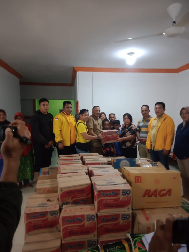 Dalam penyerahan bantuan sembako dan pakaian layak pakai tersebut Ketua DPD Golkar Ketapang didampingi oleh Anggota Fraksi Partai Golkar Henri Wijaya, Tomas Ferlian,S.Ip.,M.Sos, Mia Gayatri,SE, Hery Susanto.A.Md, Gusmani, SM dan Suyanto,S.Ip, Ketua Harian Partai Golkar Harun Harasid,SE, serta Kader Partai Golkar dan dibantu oleh Komcat Partai Golkar, Roket.