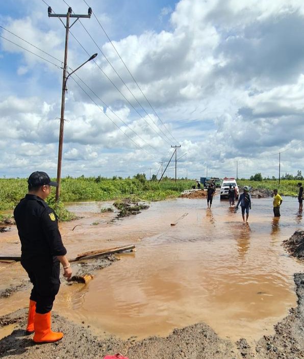 WARTA KETAPANG – Sekretaris Daerah (Sekda) Kabupaten Ketapang dalam rangka melakukan kegiatan Safari Natal Tahun 2022, menyempatkan diri untuk singgah dan melihat kondisi ruas jalan Pelang-Tumbang Titi yang mana terdapat satu titik yang digenangi air sehingga membuat meting atau jembatan darurat terlepas.
