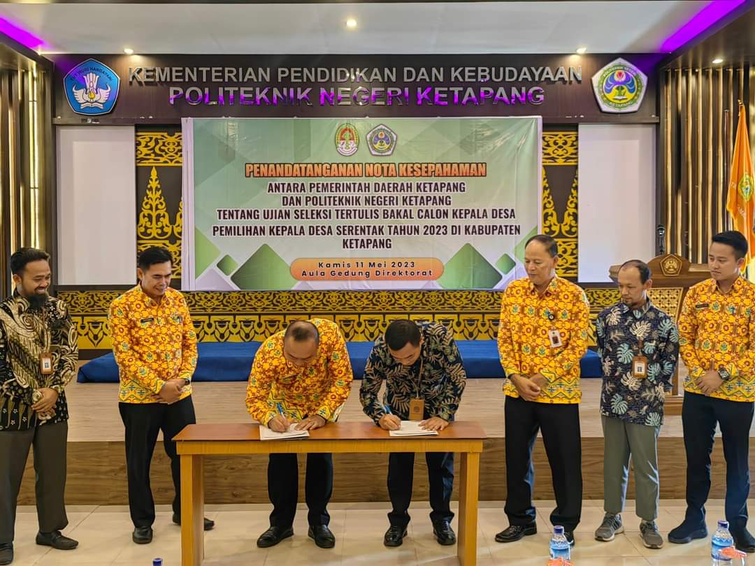 WARTA KETAPANG – Sekretaris Daerah Alexander Wilyo, S.STP., M.Si menandatangani Naskah Kerjasama dengan direktur Politeknik Negeri Ketapang (Politap) sekaligus meninjau lokasi tes Bakal Calon Kades (Bacades) Tahun 2023, pada Kamis (11/5/2023) bertempat di Politeknik Negeri Ketapang.