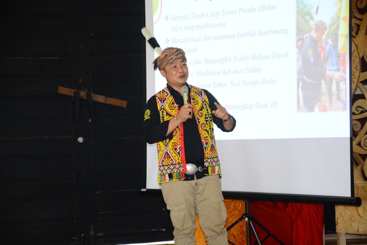 “Kita semua (DAYAK) memiliki kelima unsur masyarakat hukum adat itu. Langkah pelestarian tanah adat: menjaga tonah colap torutn pusaka atau hutan adat, yang masih tersisa, merevitalisasi dan menaman kembali tembawang buah janah, menjaga dan mengangkat tradisi, budaya Dayak: ritual adat mendirikan keramat padagi, ritual adat pesta panen Nyapat Tahun atau Naik Dango, ritual adat Senganyong Menjangkap Buah dan lain-lainnya,” imbau Sekda.