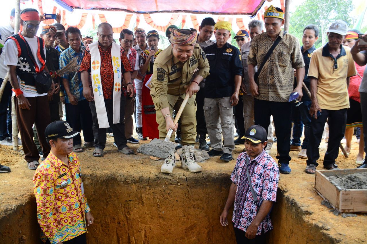WARTA KETAPANG – Mewakili Bupati, Sekretaris Daerah (Sekda) Kabupaten Ketapang, yang juga Patih Jaga Pati Desa Sembilan Domong Sepuluh Kerajaan Hulu Aik, Raden Cendaga Pintu Bumi Jaga Banua, Alexander Wilyo, S. STP, M.Si meletakkan batu pertama Gereja Stasi Santo Yosep Karangan Kecamatan Marau sebagai tonggak dimulainya pembangunan, Kamis (25/5/2023).