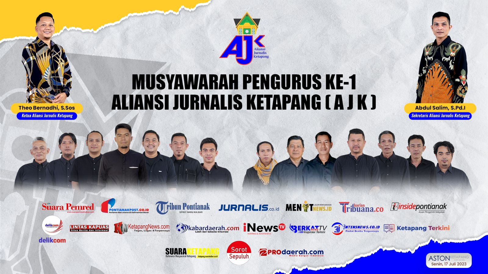 Sementara itu, Ketua Panitia Muspen AJK ke-1, Agustiandi, SP mengatakan, kegiatan musyawarah pengurus untuk pemilihan ketua dan pengurus AJK periode 2023-2027 ini bakal digelar pada Senin 17 Juli 2023 di Ballroom Hotel Aston Ketapang.